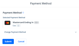 Note: If you already have a payment method stored on your profile, it will appear here. Click Change Payment Method to select a different payment method from your profile or to add a new payment method.
