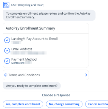 After signing in and linking your account (see Connect a CART Account on LansingMIPay), follow the steps below to enroll your CART account in AutoPay: